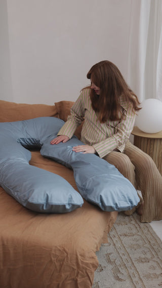 MINICAMP U-Shaped Pregnancy Pillow with Natural Sateen Cotton Cover in Stone Blue | Kapok or PES Filling
