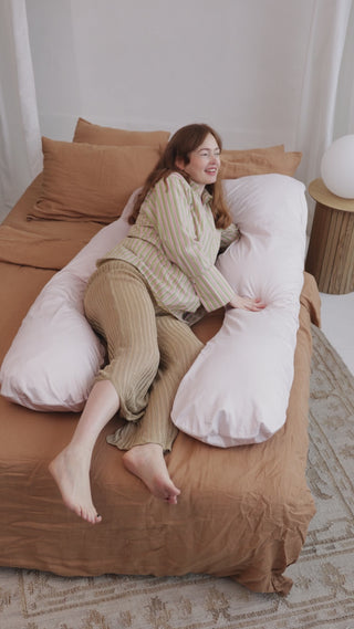 MINICAMP U-Shaped Maternity Pillow with Natural Sateen Cotton Cover in Shell Pink | Kapok or PES Filling