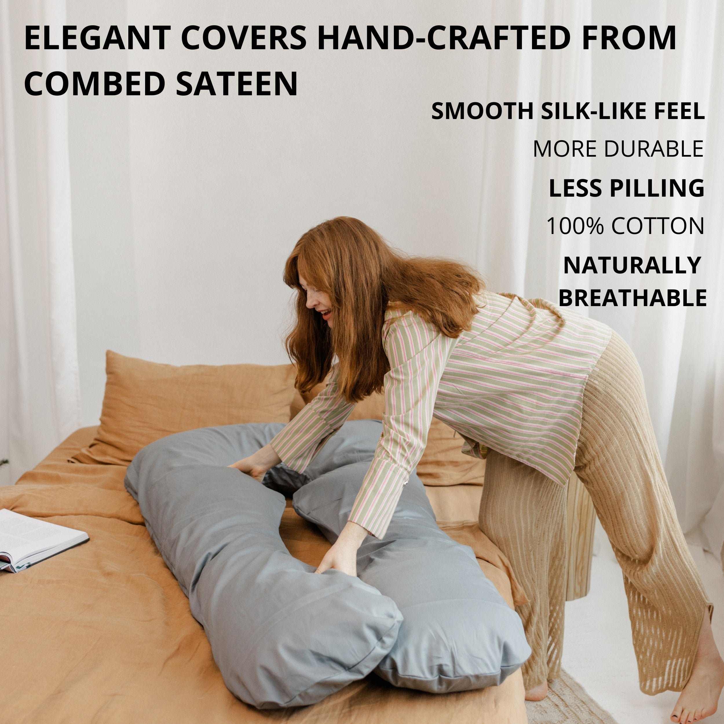 MINICAMP U-Shaped Pregnancy Pillow with Natural Sateen Cotton Cover in Stone Grey | Kapok or PES Filling