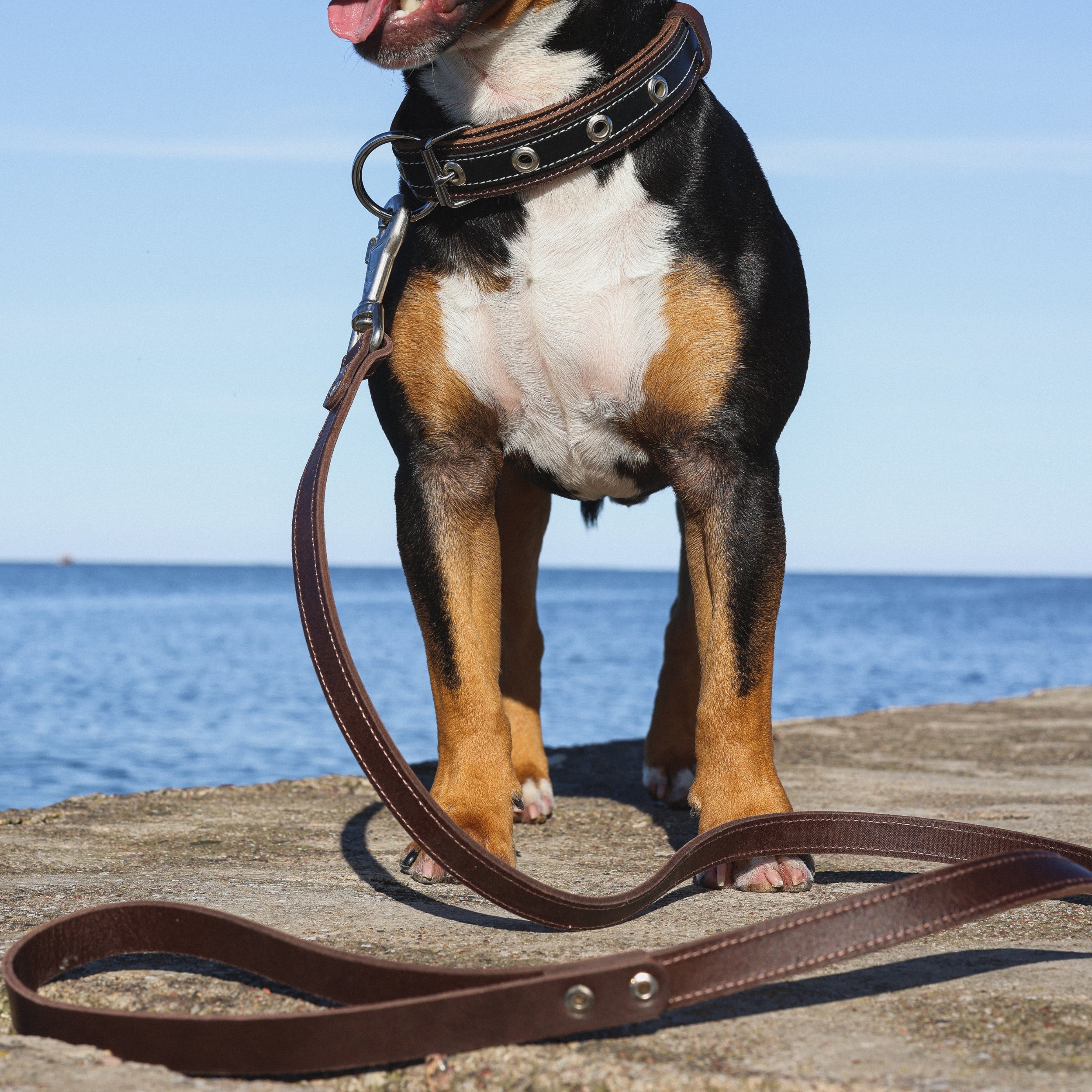 A reliable, heavy-duty leather lead designed for dog owners who value durability, comfort, and a clean, timeless look.