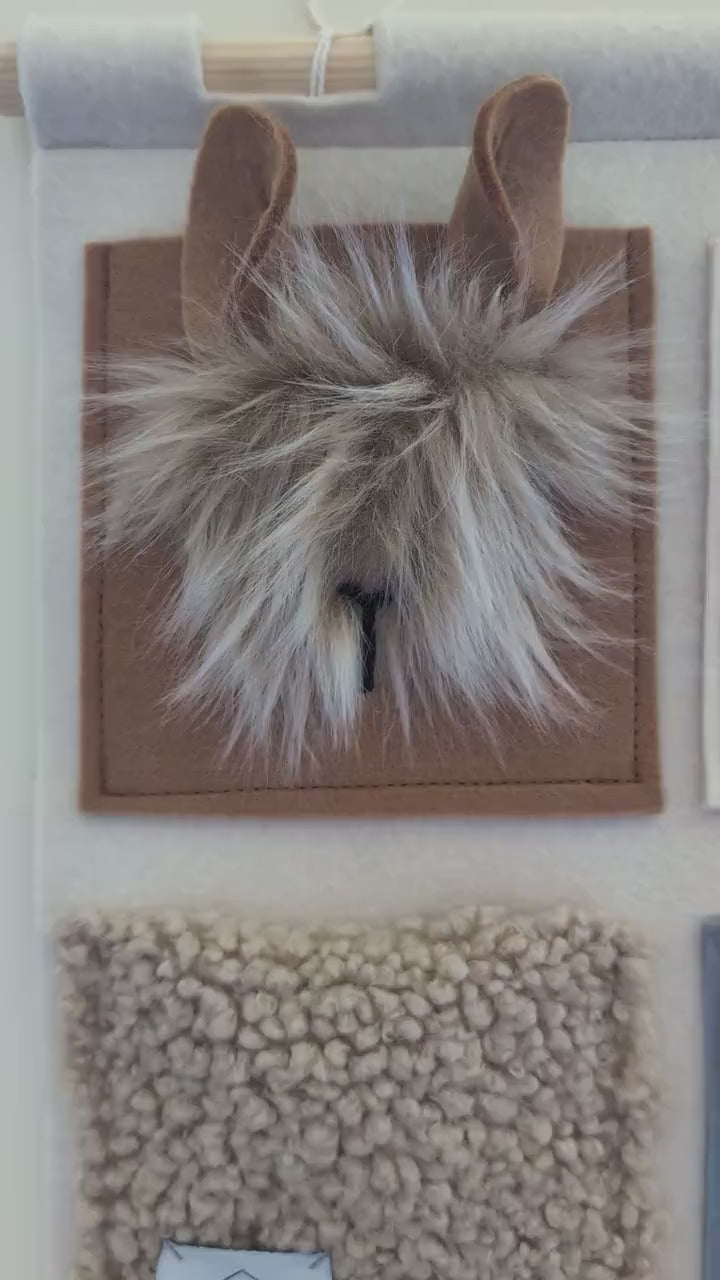 This woodland-themed felt Advent calendar is a unique and playful way to enjoy the Christmas season while creating lasting family traditions. Designed with adorable animal pockets and inspired by Scandinavian style, it works not only as a Christmas countdown but also as an educational memo game and wall organizer.